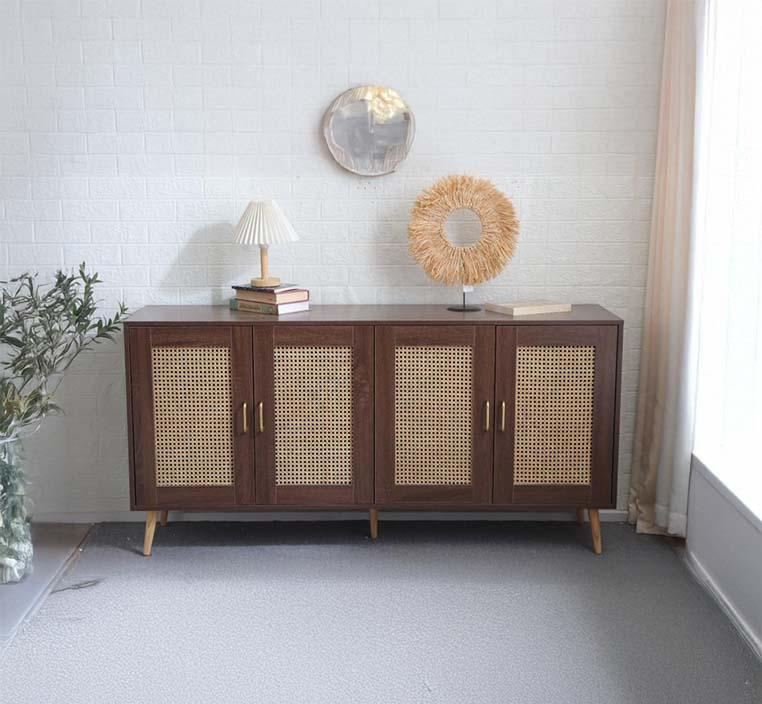 تم تصنيع بوفيه رينزو من خشب MDF عالي الجودة، المقاوم للرطوبة والخدوش، ليمنحك متانة تدوم مع الاستخدام اليومي، دون المساومة على المظهر الراقي. يتميز التصميم بأربعة أبواب أنيقة بآلية فتح سلسة، تتيح لك تنظيم الأغراض بشكل مرتب وسهل الوصول.