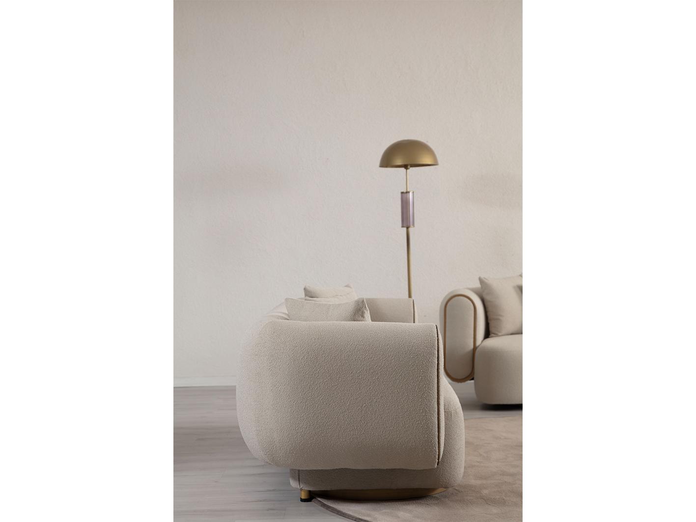 تم تصنيع كنبة سايستا باستخدام هيكل داخلي متين من خشب الـ plywood عالي الجودة، مما يمنحها ثباتًا قويًا ومتانة تدوم طويلاً. أما الأرجل فهي مصنوعة من الفولاذ المقاوم للصدأ بتشطيب أنيق بلون ذهبي غير لامع (brushed gold)، تضيف لمسة فاخرة للتصميم وتمنحها مظهرًا عصريًا.