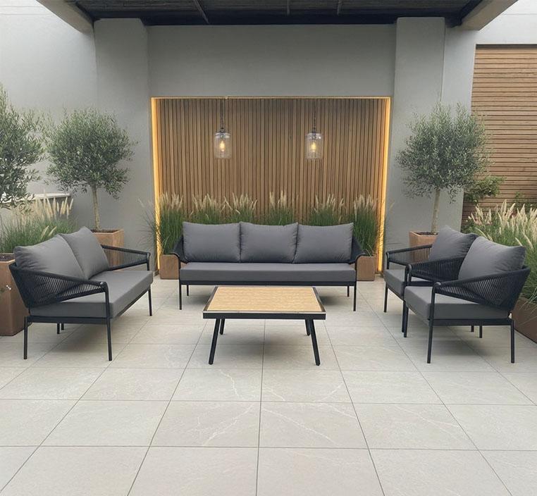يمثل هذا الطقم مزيجًا متقنًا من الراحة والجمال والمتانة، حيث يجمع بين وسائد ناعمة، وأقمشة قابلة للتنفس، وهياكل متينة تعزز ثبات الجلسة على مختلف الأسطح الخارجية. كما يتسم التصميم المودرن بخطوط نظيفة تشكل إضافة راقية لأي مساحة، مع إدخال لمسات طبيعية تضفي إحساسًا بالدفء والانسجام.