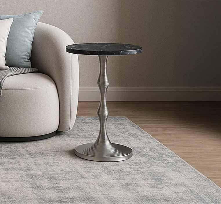 سيلفر طاولة خدمة بقاعدة معدنية وودي - رخام-أسود
