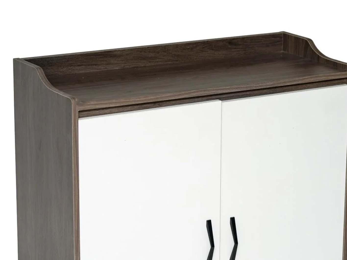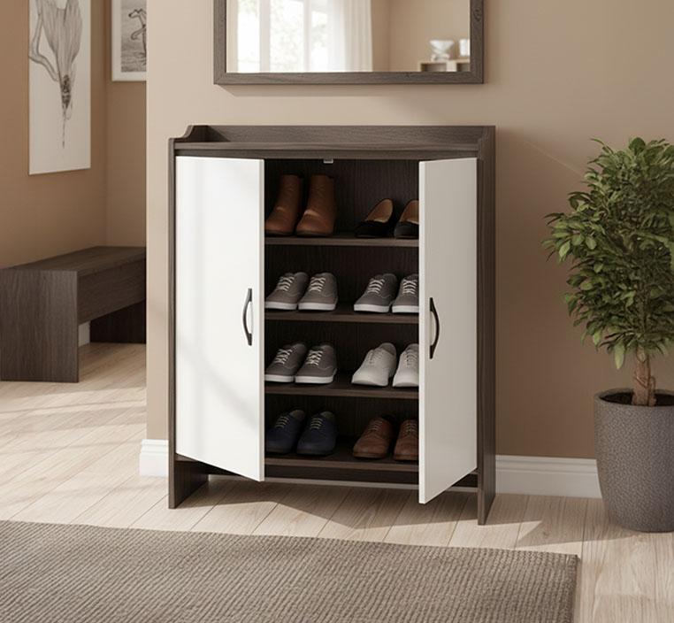 يتميز الدولاب بتصميمه العملي المكوّن من بابين أماميين يفتحان بسلاسة، ما يسهّل الوصول إلى الأحذية وتنظيمها دون عناء. يساهم هذا التصميم البسيط في الحفاظ على مظهر مرتب وموحّد، كما يساعد على حماية الأحذية من الغبار والعوامل الخارجية، مع إبقائها مخفية بشكل أنيق داخل الدولاب.