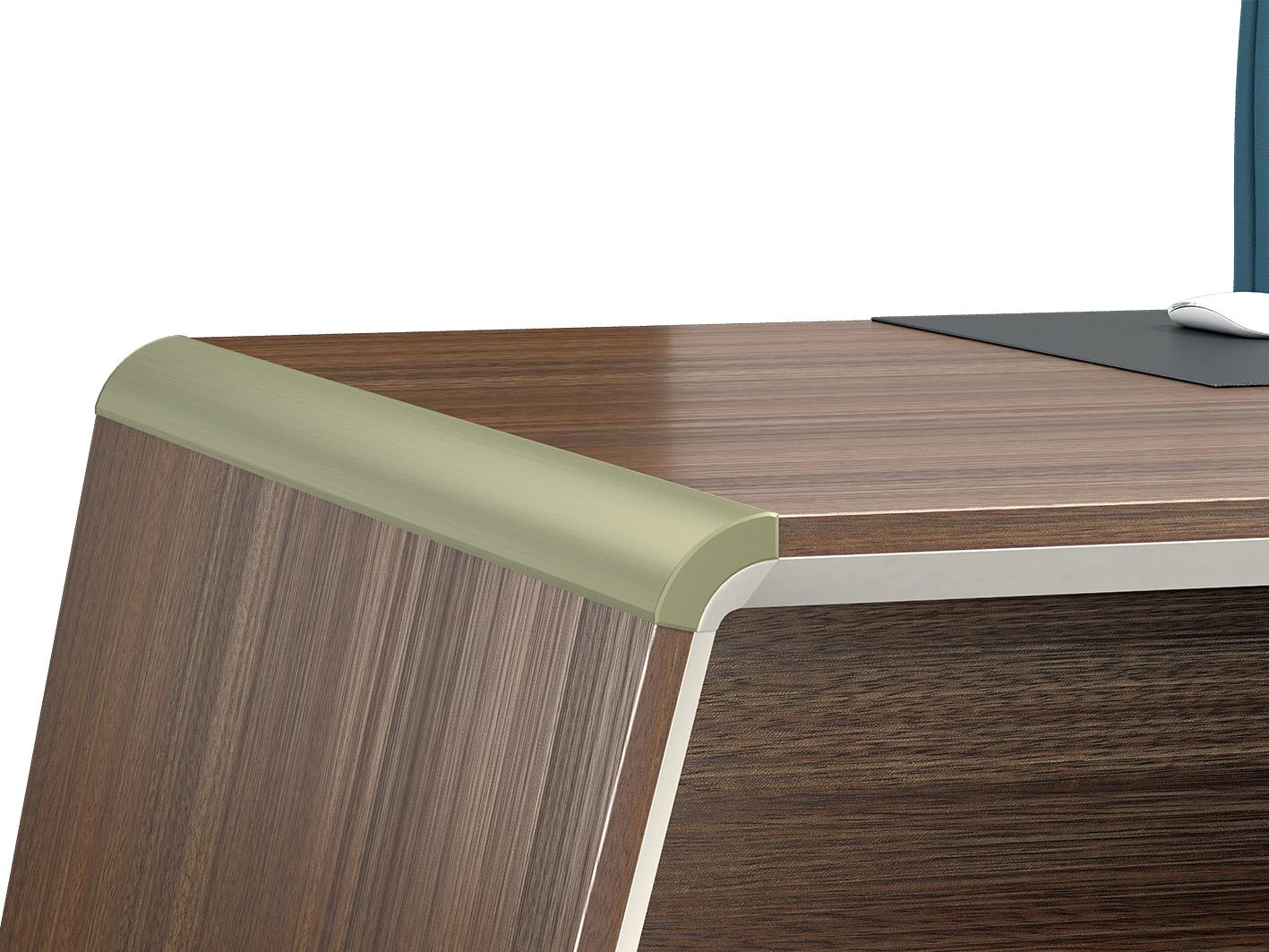 لمسات معدنية ذهبية: يضيف المكتب لمسات معدنية ذهبية راقية، تبرز جمال وأناقة التصميم، مما يمنحه مظهرًا فاخرًا يتناغم بشكل مثالي مع مزيج اللون الكريمي والبني، ليضفي إحساسًا بالفخامة والرقي على المكان.