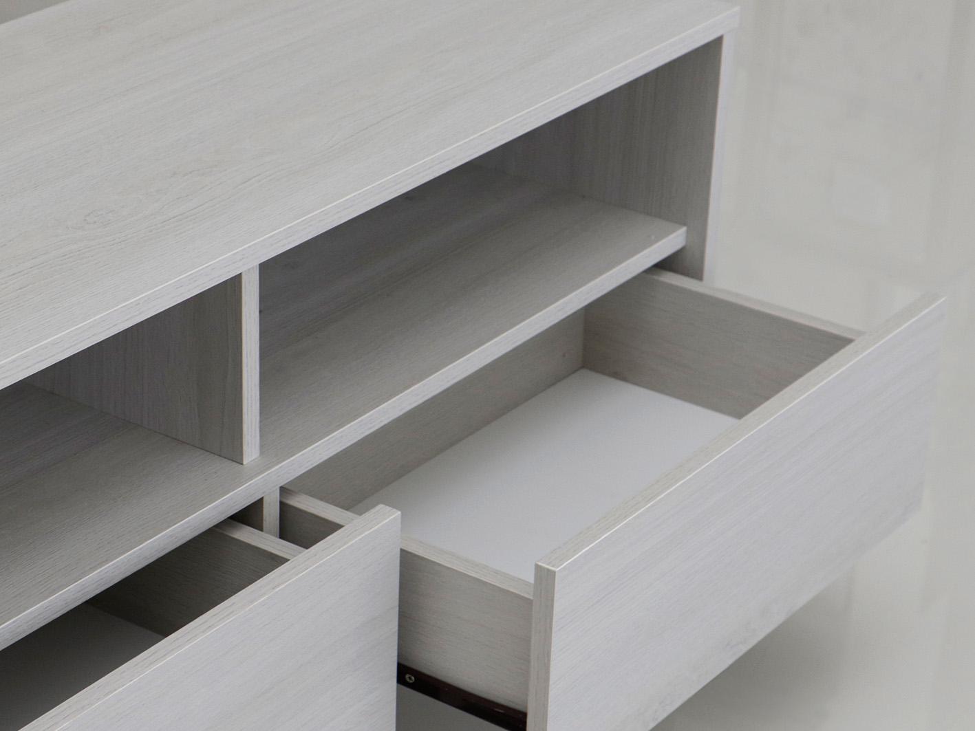 توفر طاولة تورينو مساحات تخزين متعددة تناسب جميع احتياجاتك. تأتي الطاولة مزودة بأرفف مفتوحة مثالية لوضع أجهزة الترفيه مثل مشغلات الأقراص وأجهزة الألعاب، بالإضافة إلى أدراج واسعة تتيح لك تخزين مختلف الأغراض بمرونة وسهولة، مما يساهم في إبقاء الغرفة مرتبة ومنظمة.